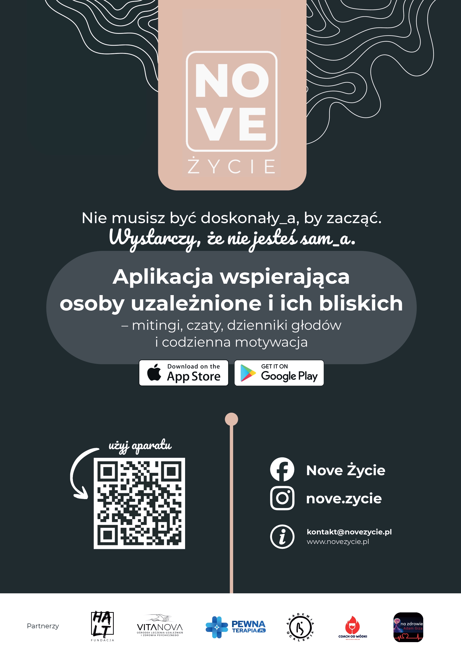 Nove Życie to bezpłatna aplikacja wspierająca osoby w kryzysie psychicznym, osoby zmagające się z uzależnieniami oraz ich bliskich. Użytkownicy znajdą w niej m.in. codzienne spotkania online ze specjalistami, materiały psychoedukacyjne, możliwość kontaktu ze wsparciem oraz narzędzia pomocne w procesie zdrowienia.