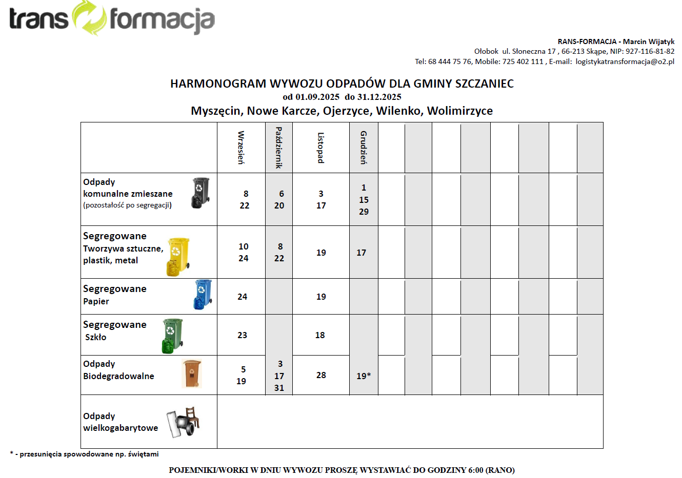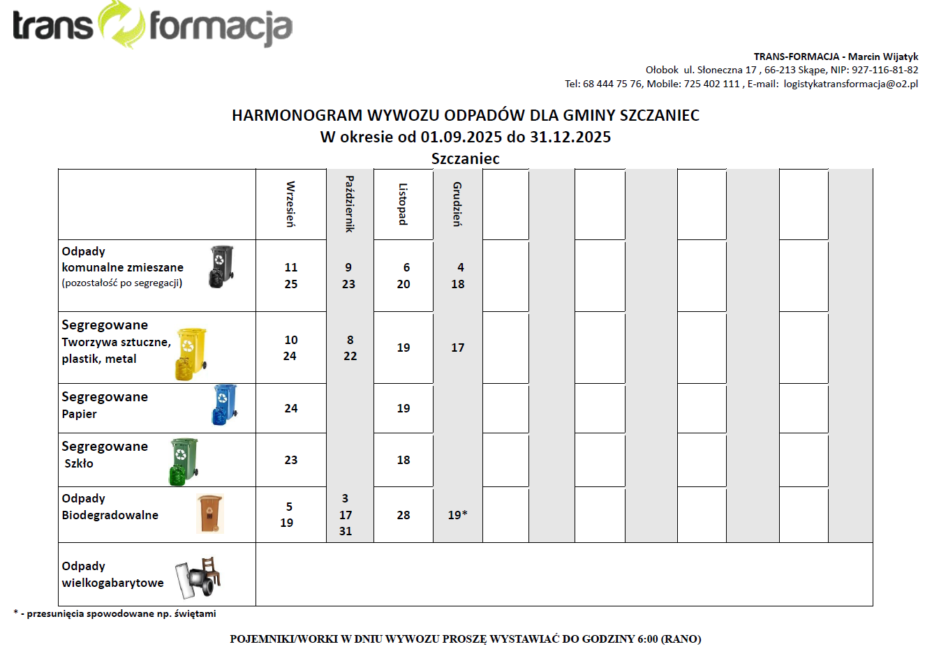 • HARMONOGRAM WYWOZU SZCZANIEC
